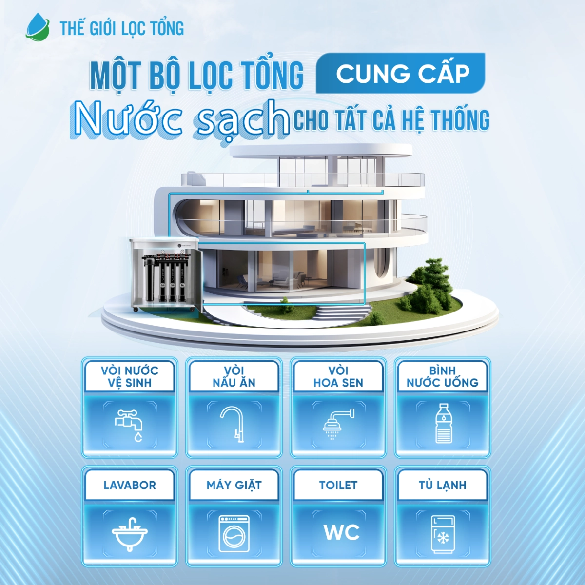 Mạng lưới 150+ showroom, đại lý toàn quốc: Khi cần hỗ trợ, kỹ thuật viên của Thế Giới Lọc Tổng sẽ có mặt trong vòng 2 giờ, xử lý sự cố minh bạch, đảm bảo nguồn nước gia đình luôn an toàn.