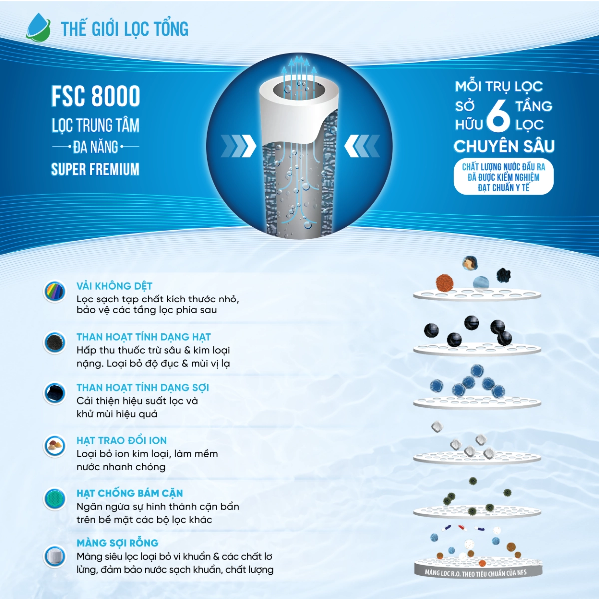 | Loại trụ lọc | FSC 8000 – Lọc trung tâm đa năng Super Premium |