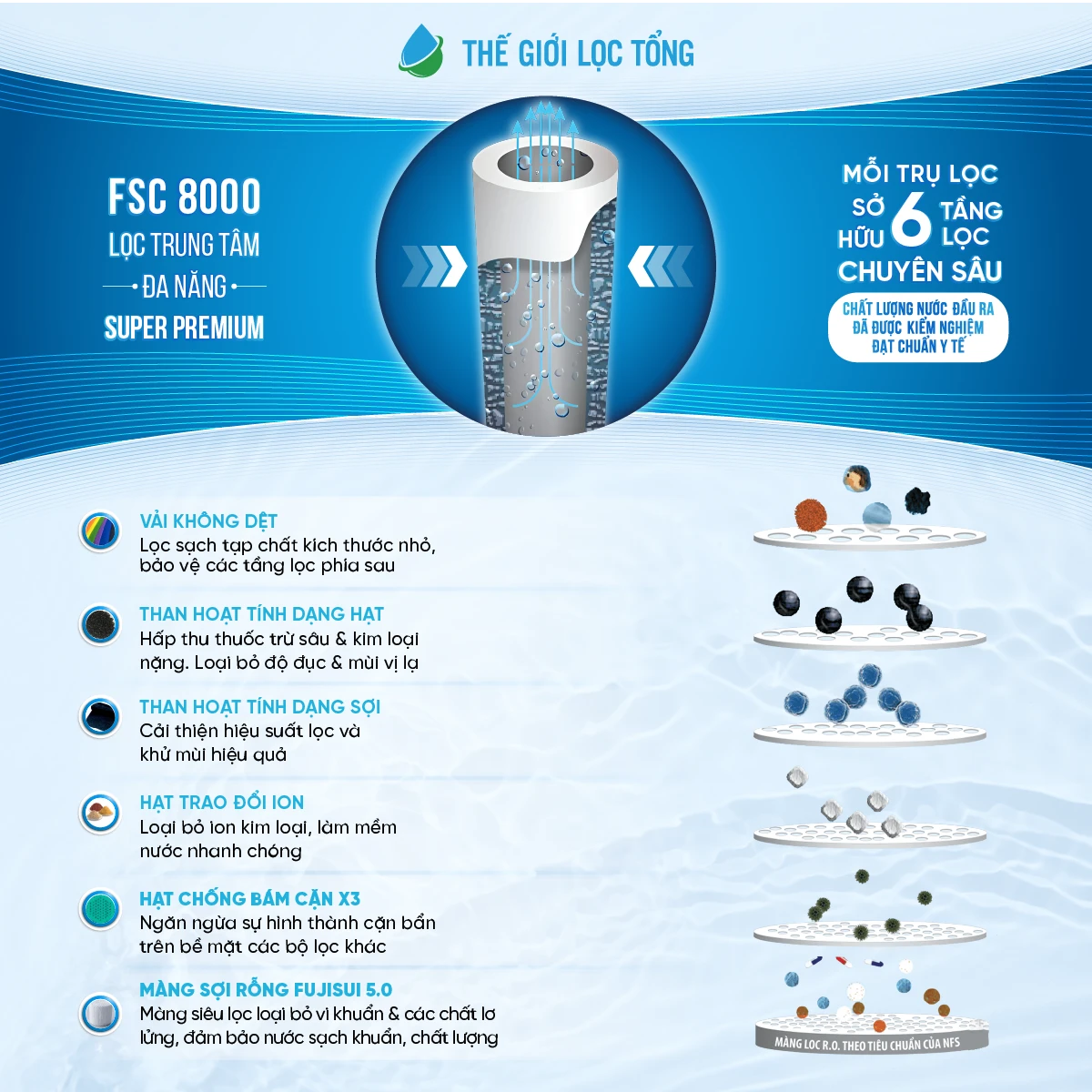 | Loại trụ lọc | FSC 8000 – Lọc trung tâm đa năng Super Premium |