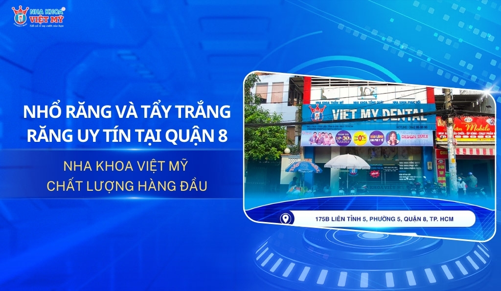 Nha khoa Việt Mỹ chi nhánh Quận 8 nằm ở địa chỉ cụ thể: 175B Liên tỉnh 5, Phường 5, Quận 8, TP.HCM. Đây là địa chỉ dẫn đầu trong việc nhổ răng và tẩy trắng răng, mỗi tháng nha khoa tiếp nhận hàng trăm lượt bệnh nhân đổ về thăm khám và hầu hết đều nhận được kết quả như mong muốn.