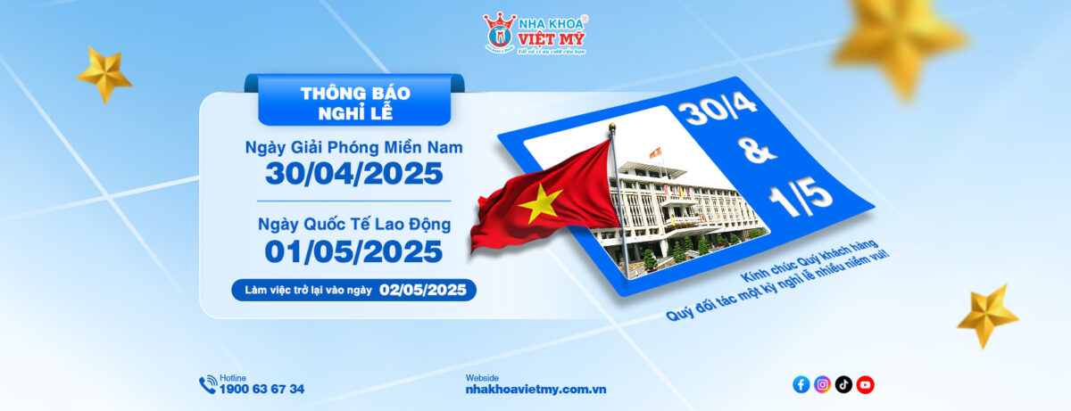 Nha khoa Việt Mỹ xin thông báo đến Quý khách hàng lịch nghỉ lễ Giải phóng miền Nam (30/4) và Quốc tế Lao động (1/5) năm 2025 như sau: