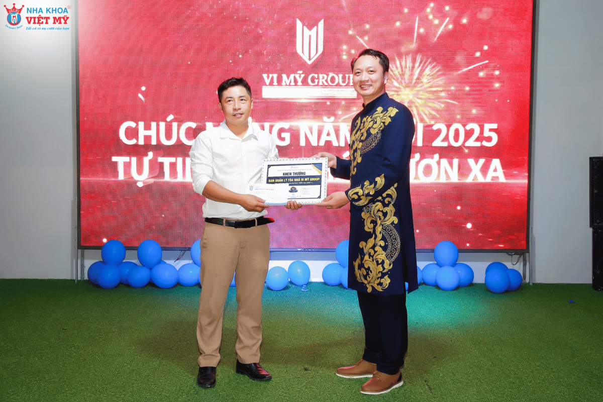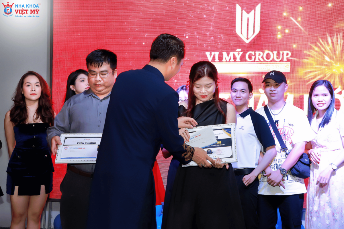 Nhân dịp này, ông Ngô Quang Phục và Ban giám đốc đã tổ chức lễ vinh danh, khen thưởng cho các cá nhân, tập thể có những thành tích xuất sắc, góp phần không nhỏ vào sự phát triển chung của công ty. Đây không chỉ là sự ghi nhận mà còn là động lực để toàn thể nhân sự Nha khoa Việt Mỹ tiếp tục phát huy năng lực, đóng góp vào sự phát triển chung của công ty.